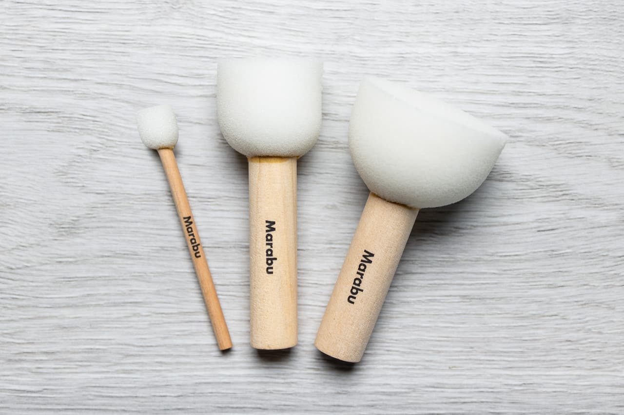 Marabu-sapluunaharjasetillä saat aikaan yksityiskohtaisia ja siistejä kuvioita kankaalle. Setti sisältää kolme harjaa koossa 1,5 cm / 3,5 cm / 5 cm, joten löydät aina sopivan koon jokaiselle sapluunalle ja pinnalle. Pyöreät, hienohuokoiset vaahtoharjat imevät tekstiilimaalia tehokkaasti ja luovuttavat sen tasaisesti töpöttäessä. Näin maali pysyy juuri siellä missä pitääkin – ilman leviämistä sapluunan alle.