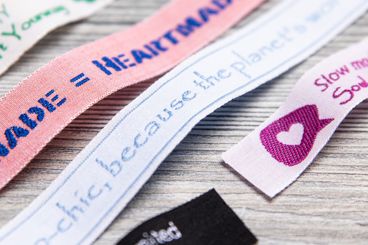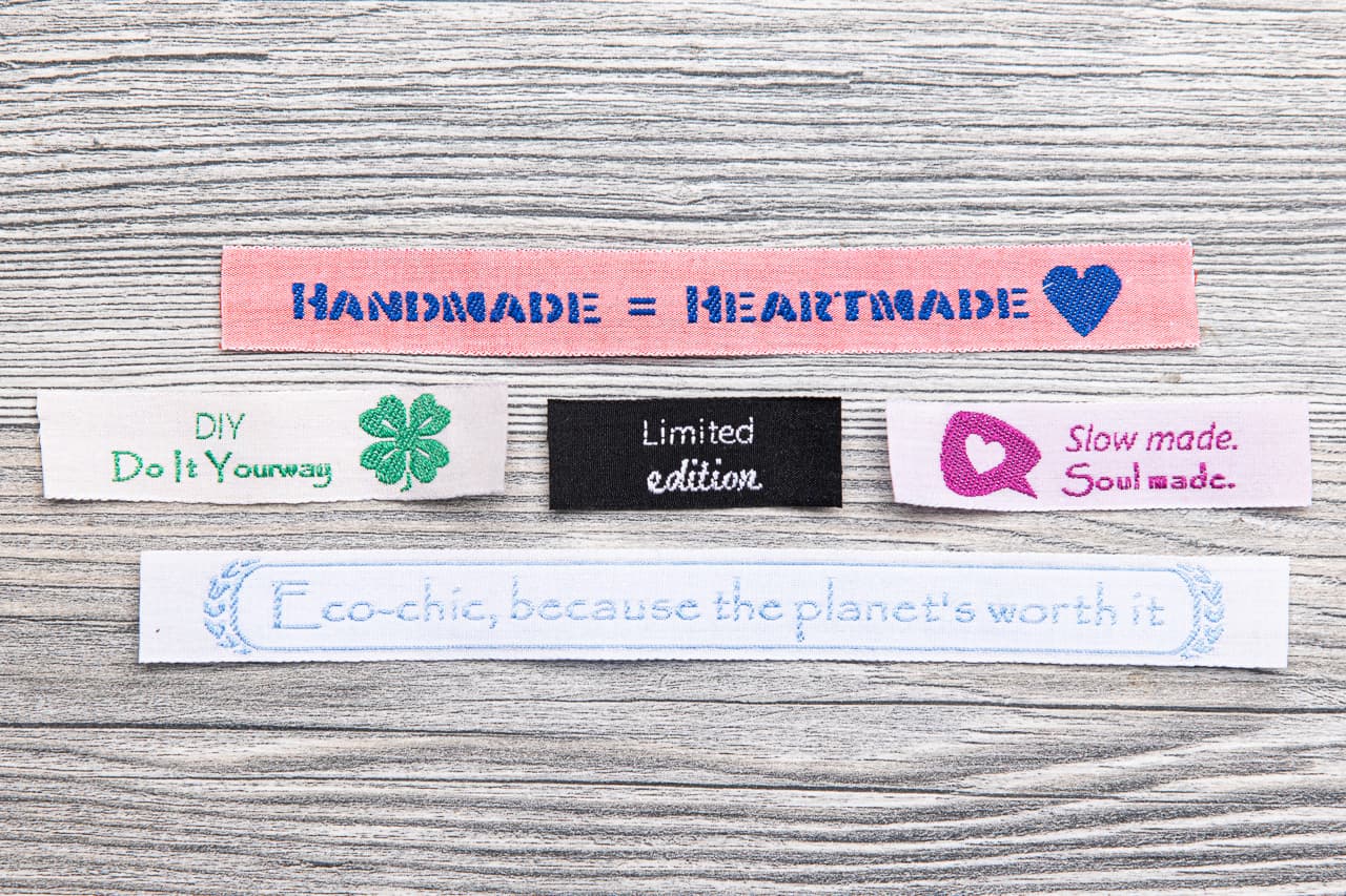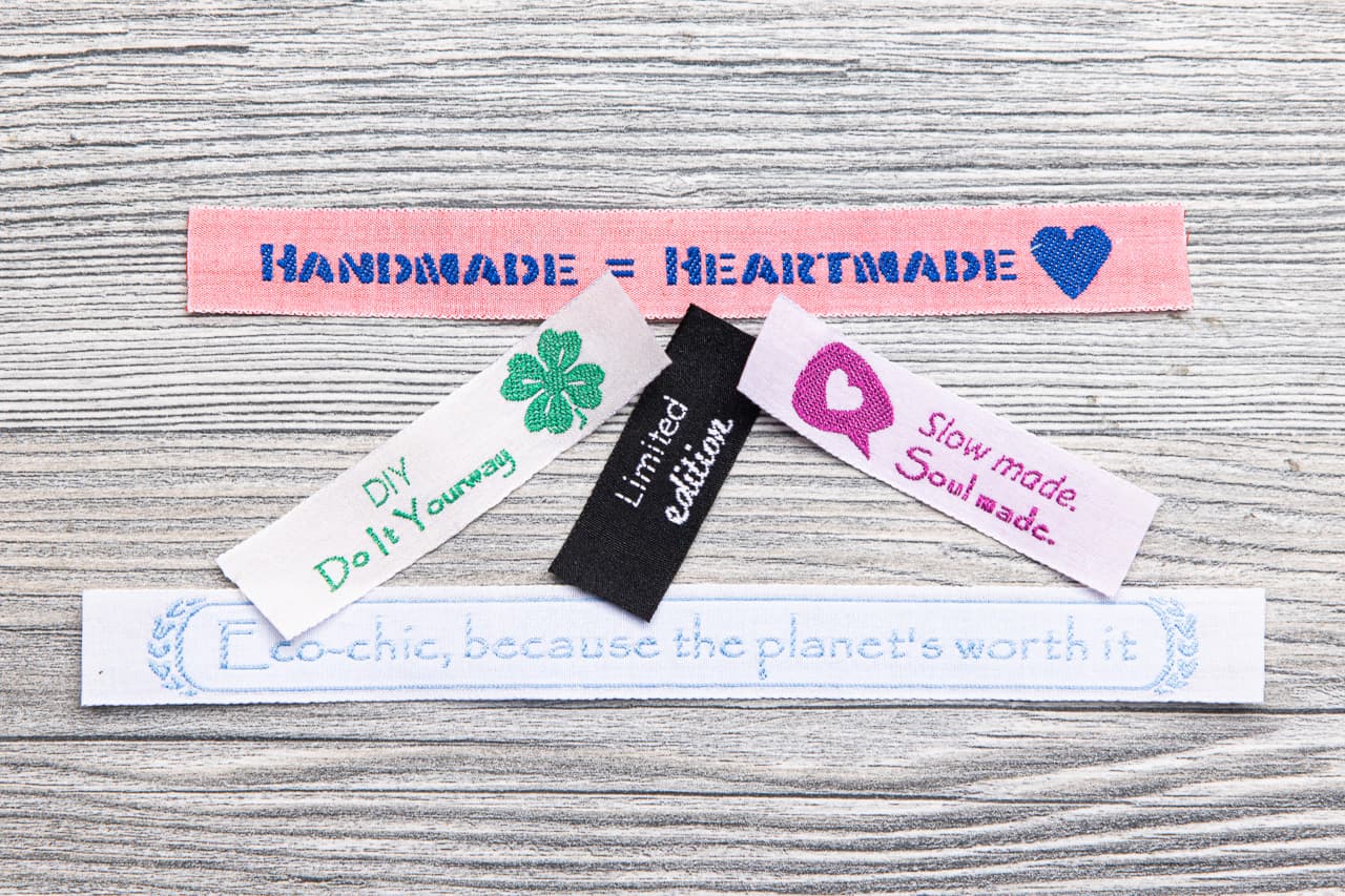 Jos haluat käyttää omia viestejäsi, suunnittele oma kudottu etiketisi helposti suoraan konfiguraattorissamme.