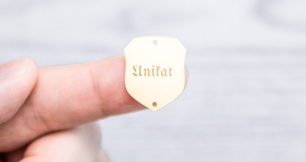 Merkin ääriviivat leikataan laserilla, kuviot, logot ja tekstit kaiverretaan laserilla. Pyynnöstä voimme myös