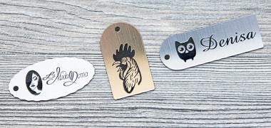 Voit valita itse suunnittelemiasi ripustusmerkkejä varten muodoista, leikkausmalleista ja reikämalleista tai ladata yksilöllisesti suunnitellun hahmotelman tiedostona. Riippumerkkisi ääriviivat leikataan laserilla, Corinera-riippumerkkien mallit kaiverretaan laserilla. Laserkaiverramme myös kiinnitysreiän riippumerkkeihisi. Jos käytät mukautettua muotoa, muista luoda reiät ja mukautetut leikkaukset suoraan tiedostoon omaa muotoasi varten.